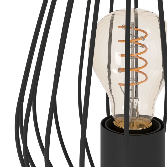 Die Tischleuchte NEWTOWN ist ein stilvolles Lichtobjekt, das aus einem ovalen, schwarzen Draht-Lampenschirm gefertigt ist. Dieser wird von einem runden, eleganten Metallfuß ergänzt, was der Leuchte eine moderne Ästhetik verleiht. Im eingeschalteten Zustand zaubert der Drahtschirm faszinierende Licht- und Schattenspiele, die jedem Raum eine besondere Atmosphäre verleihen.